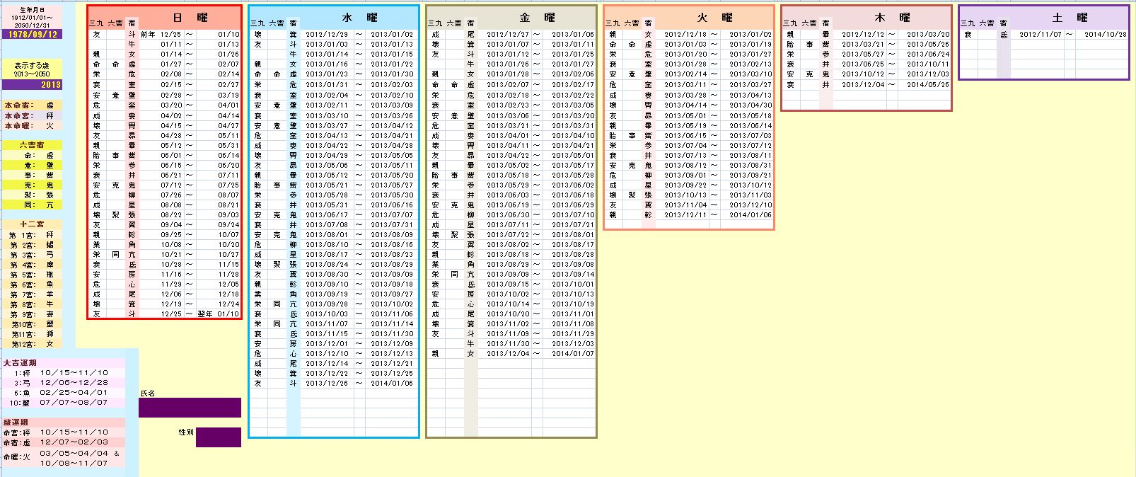 上記の鑑定盤はエクセルにて表示したものです。